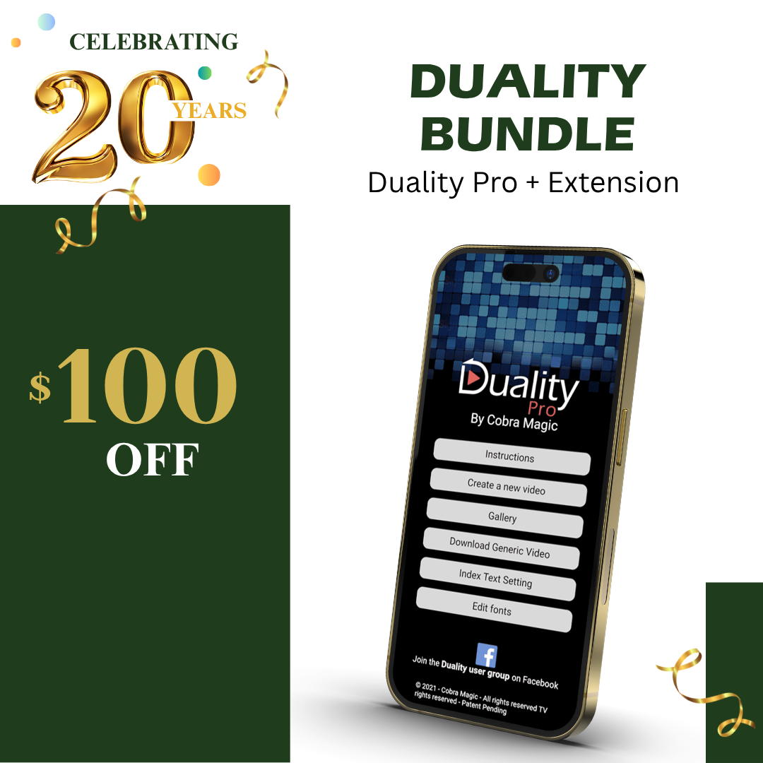 - Duality Transmitter: Incorporate live updates directly into your pre-recorded videos with the Duality Transmitter app. This tool allows for the seamless integration of new information, making each show unique and interactive.     The Duality Transmitter is an extra application through which you can transmit any kind of information (text, drawing, or picture) to the Duality Video Player while the video is playing. Use an assistant to do the dirty work for you - leaving you totally free to perform.