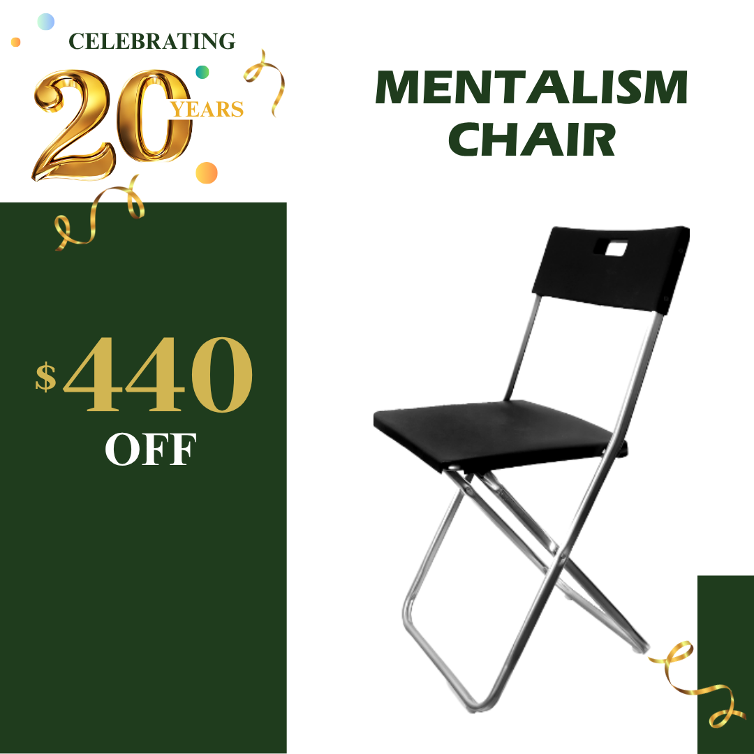 Improve your mentalism acts with our trusted Mentalism Chair, favored by leading magicians all around the world. When experts rely on this tool, it shows its true value. Using the Mentalism Chair in your performances will not only leave a lasting impression, but also help you get more shows.
